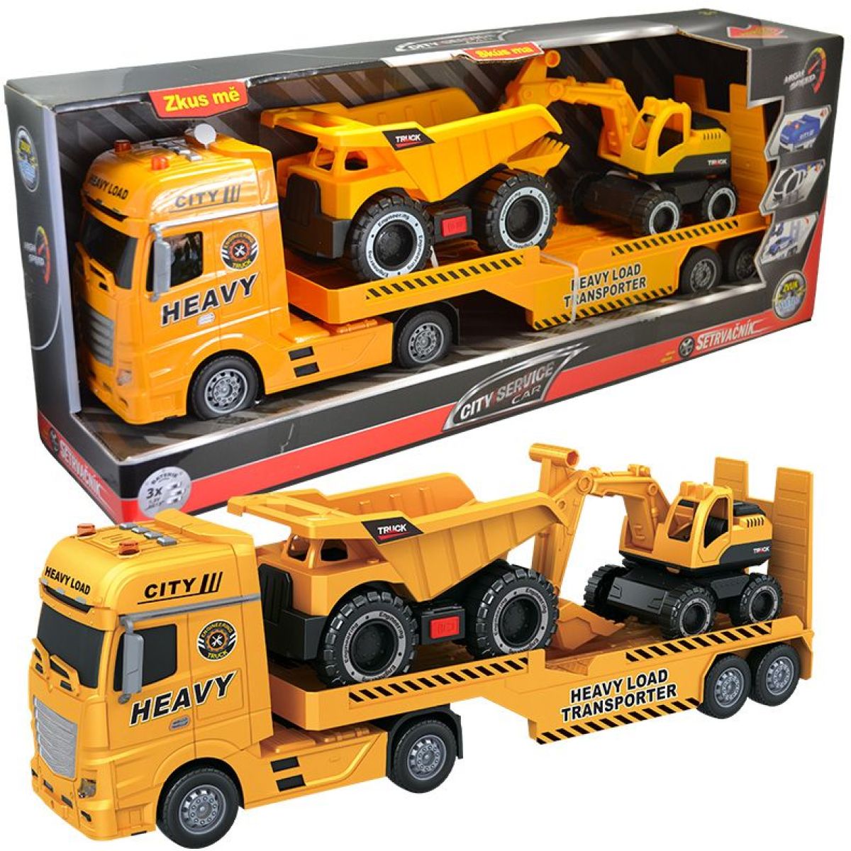 Zažite zábavu so Sparkys CITY SERVICE CAR – Ťahačom s bagrom a nákladným autom v mierke 1:12. S dĺžkou až 53 cm a mäkkými gumovými kolieskami ponúka hladký pohyb po rôznych povrchoch. Svetlá a zvuky prinášajú ďalší rozmer hry. Vďaka zotrvačníkovému pohonu je ovládanie jednoduché bez potreby batérií na motor. V sade nájdete aj bagor a nákladné auto pre nekonečné možnosti stavania.