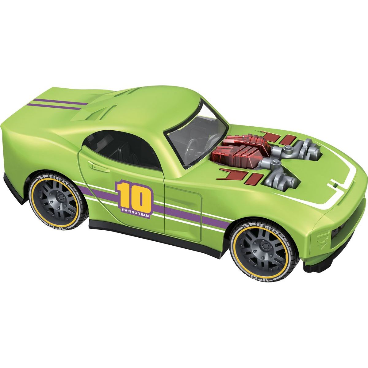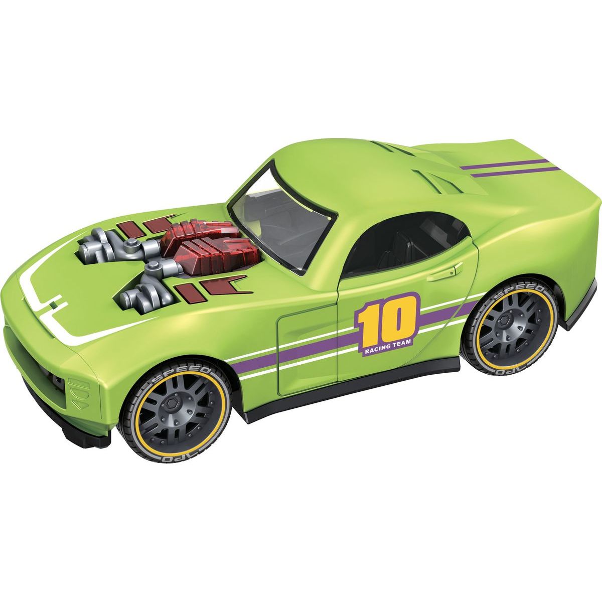 Tento zelený model je vyrobený z pevného plastu, ktorý vydrží aj tie najdivokejšie hry vonku alebo doma. Stlačte tlačidlo a auto ožije so svetelnými efektmi a zvukom motora – ako pravé pretekárske vozidlo! Dvere sa dajú otvoriť, čo prináša ešte viac možností na hranie.