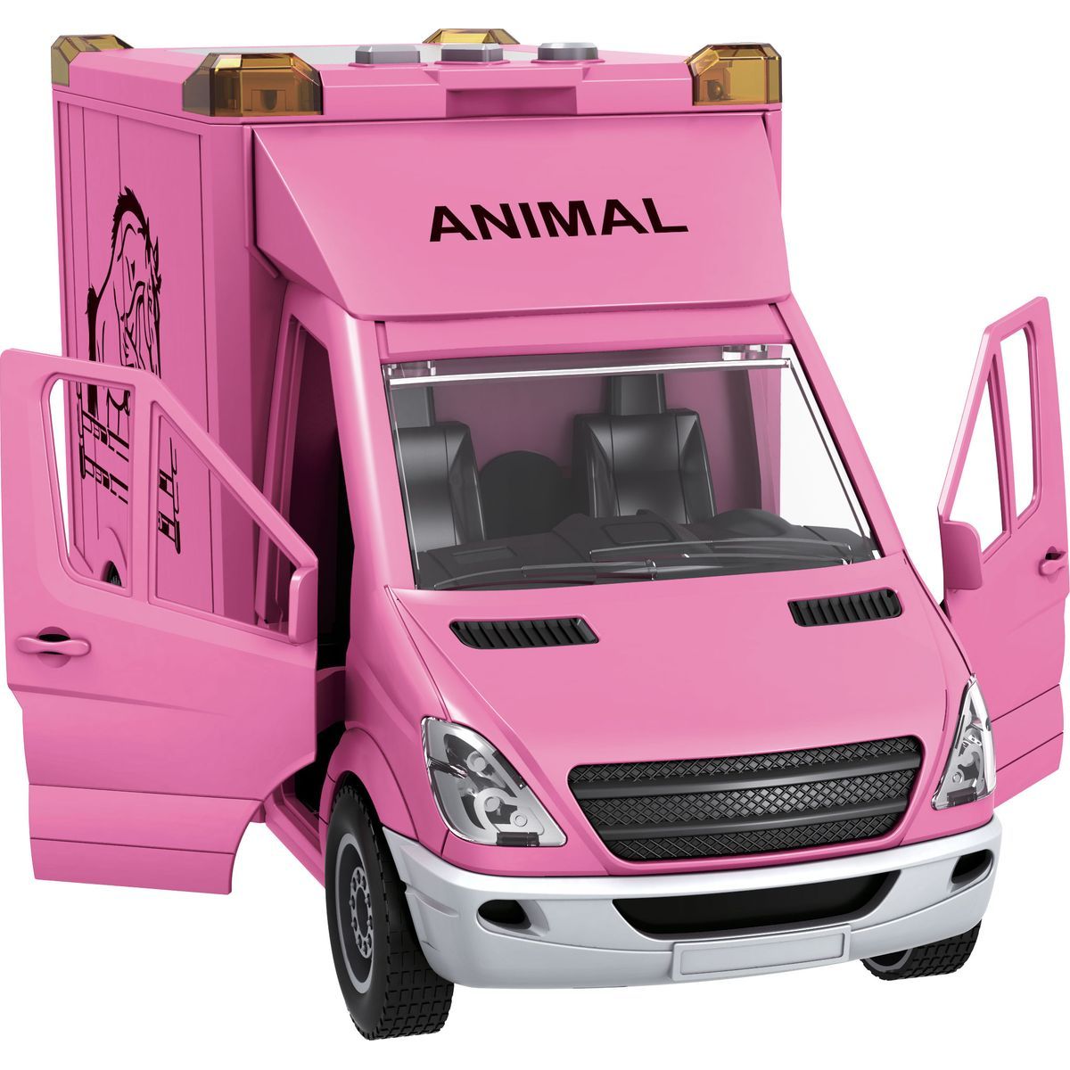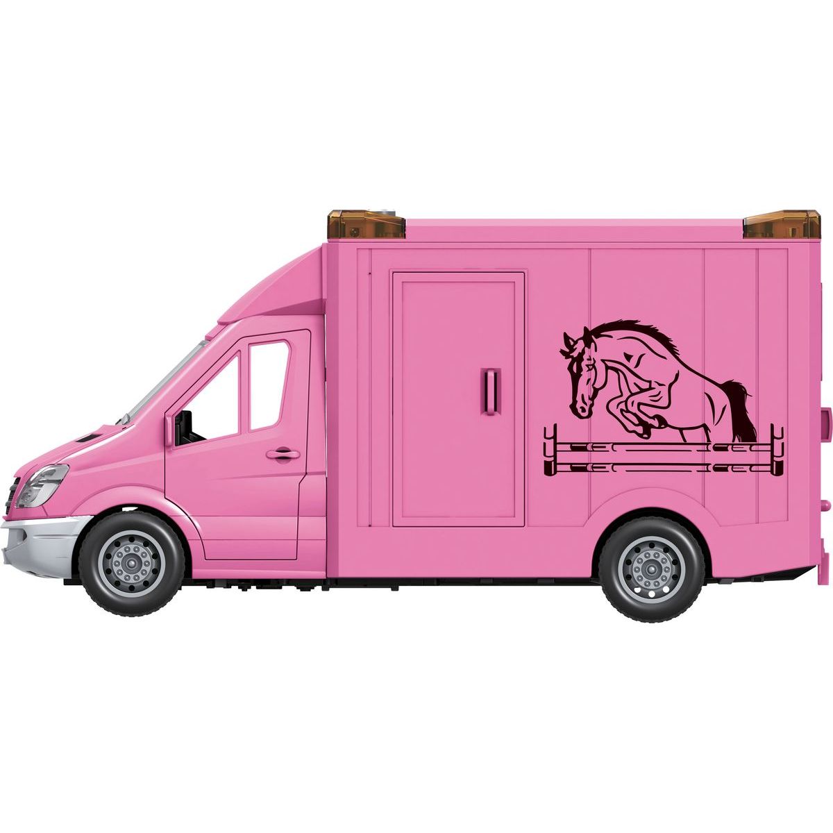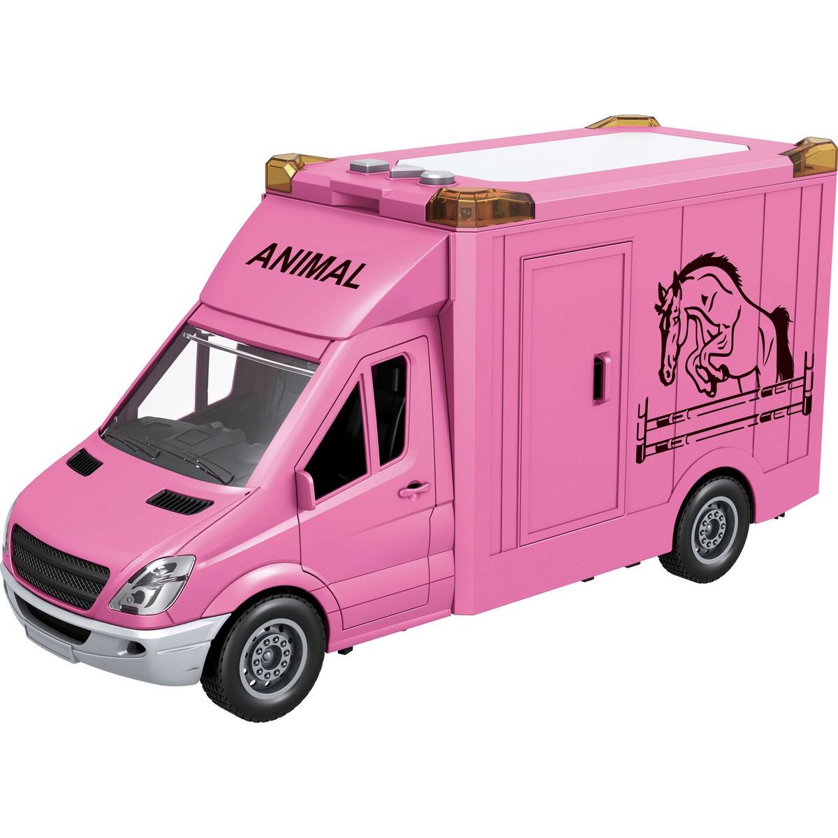 Sparkys CITY SERVICE CAR - 1:14 Transport koní v ružovej farbe je ideálnou hračkou pre deti od troch rokov, ktoré radi objavujú svet cez hru. Vyrobený z kvalitného plastu so setrvačným pohonom a mäkkými gumovými kolieskami zabezpečuje tichý a plynulý pohyb na rôznych povrchoch. Otváracie predné aj zadné dvere umožňujú jednoduchý prístup ku koňovi, ktorý je súčasťou balenia spolu so svetlami a zvukmi pre autentický zážitok zo hry. Batérie AA sú tiež zahrnuté v sade, takže dieťa môže začať hrať ihneď po rozbalení. Táto hračka podporuje rozvoj jemnej motoriky aj tvorivosť počas hier plných fantázie.