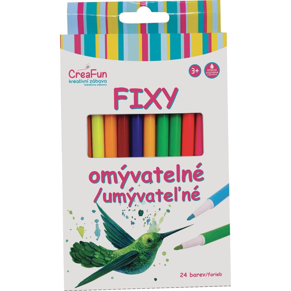 Tieto umývateľné fixky Sparkys v sade 24 farieb sú ideálne pre malých tvorcov od troch rokov. Fixky majú jasné farby, ktoré sa ľahko zmývajú z rúk aj oblečenia, takže deti môžu bez obáv maľovať a kresliť podľa svojej fantázie. Sada podporuje rozvoj kreativity pri každom použití a praktické balenie je vhodné na prenášanie.