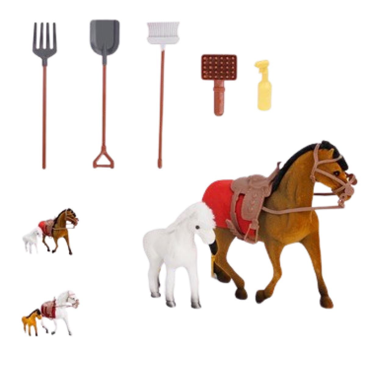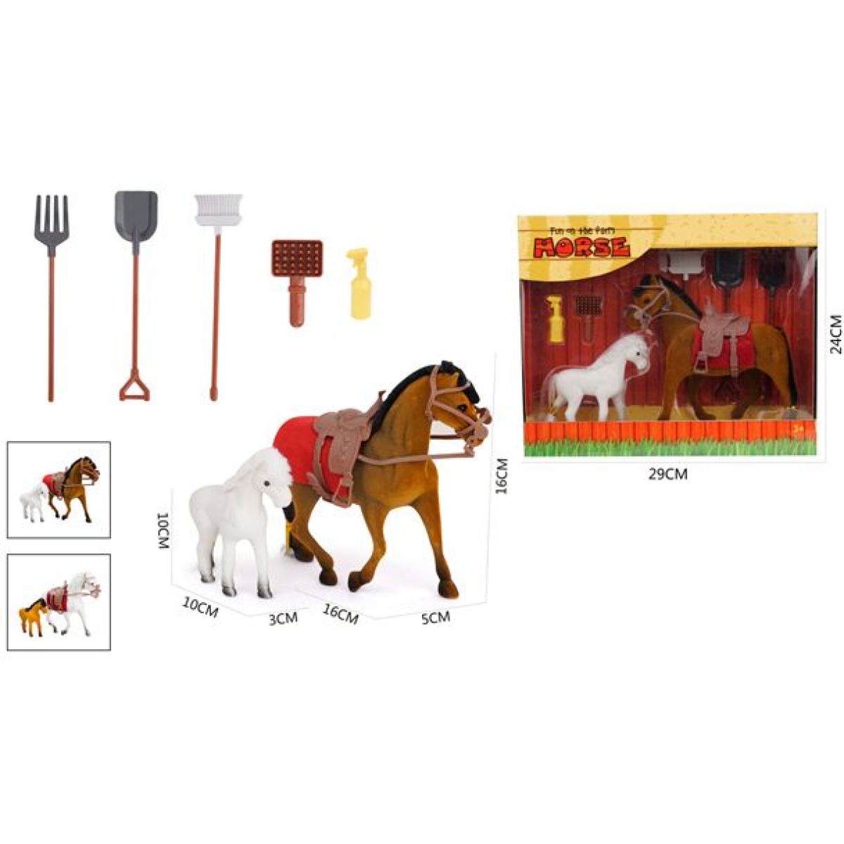 Pre malých milovníkov koní je pripravená sada Sparkys Kôň a poník s príslušenstvom 7ks, ktorá prináša autentický zážitok zo sveta jazdenia priamo domov. Deti od 3 rokov môžu objavovať radosť z hry s koňom, poníkom a ich doplnkami, ktoré rozvíjajú predstavivosť aj lásku k zvieratám. Táto starostlivo zostavená súprava podporuje tvorivé hranie a spoločné chvíle plné zábavy v rodinnom kruhu.