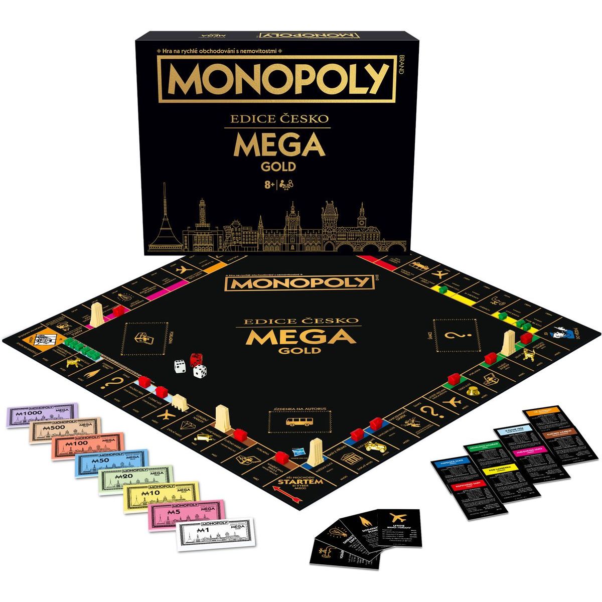 Vstúp do sveta, kde sa klasické Monopoly menia na neopakovateľný zlatý zážitok! Monopoly Mega Gold Česká republika prináša luxusnú atmosféru s mapou známych českých lokalít, rozšíreným herným plánom a väčším počtom nehnuteľností, ktoré umožnia hráčom získavať ešte vyššie zisky. Zlaté figúrky pôsobia ako malé poklady a každá partia tak získava jedinečný štýl. Ideálna voľba pre fanúšikov, ktorí chcú svoju obľúbenú strategickú hru povýšiť na úroveň skutočnej zberateľskej edície. Samozrejmosťou sú české pravidlá, takže môžete hrať okamžite.