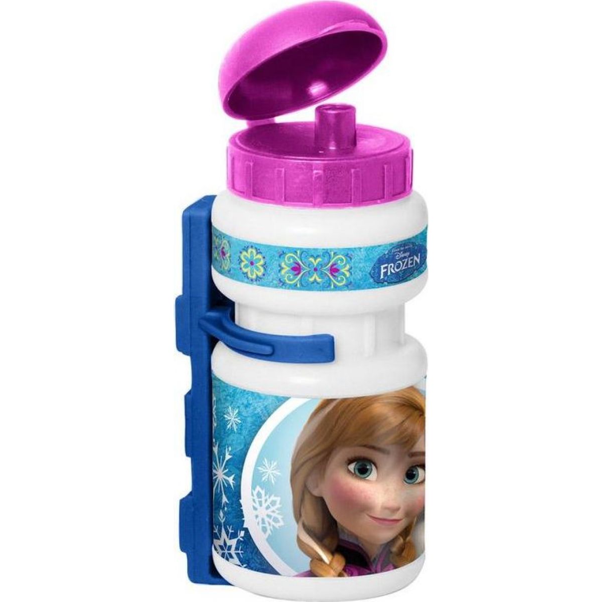 Princezné Anna a Elsa sú námetom pre fľašu na pitie, ktorá je jednoducho použiteľná pri jazde na bicykli. Držiak, v ktorom je upevnená, je univerzálny a vhodný pre väčšinu bicyklov.