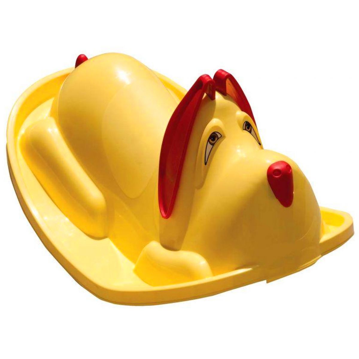 Plastové houpadlo ve tvaru pejska určené jako první houpačka pro malé děti. Holčičky i kluci mohou zlepšovat svou koordinaci na této pohyblivé přitom stabilní hračce. Při sezení na sedátku se drží za červená ouška.