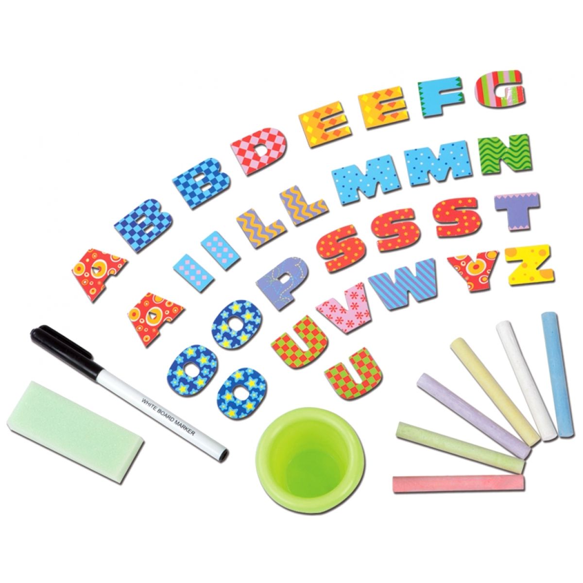 Součástí je houbička, sada magnetických písmen, sada barevných kříd a mazatelný fix (celkem 61 ks příslušenství).