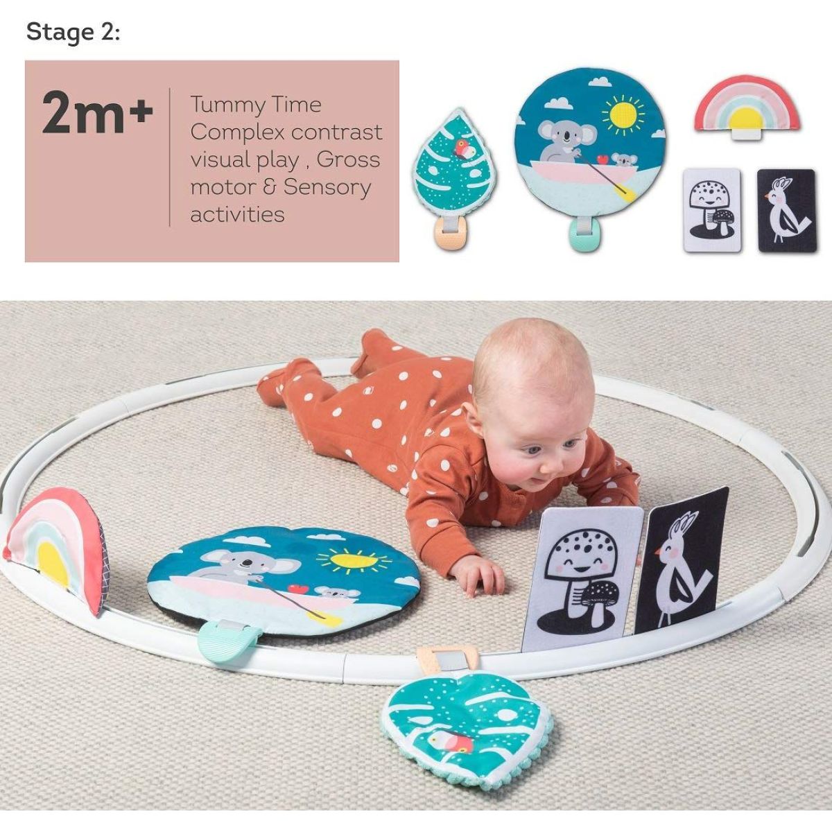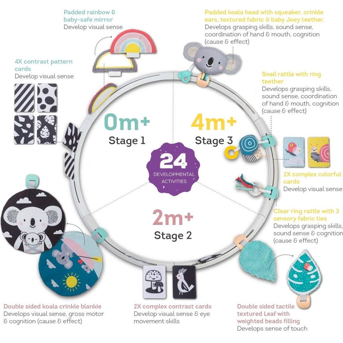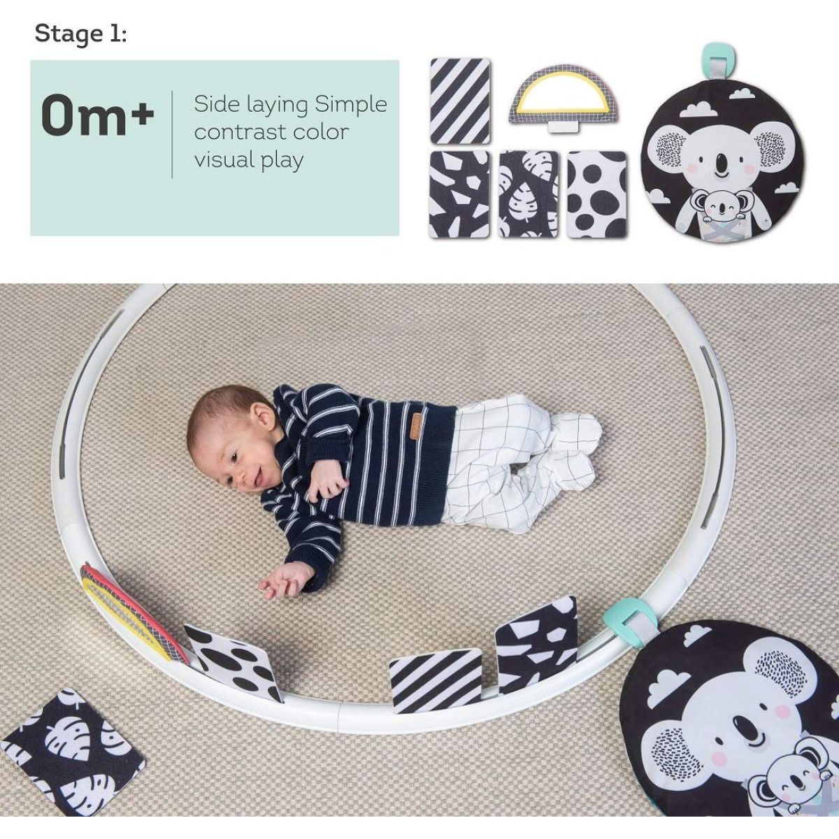 Bohato vybavený hrací kruh je určený deťom od narodenia, a to pre jeho rôzne vývojové štádiá. Zakomponovanie čiernobielych prvkov je vhodné pre najmenších detí, u ktorých sa ešte len vyvíja farebné videnie. Pre deti od 2 mesiacov sú vhodné šuštiace prvky a farebné obrázky, pre dieťa od 4 mesiacov potom rôznorodé textúry, pískacie a hrkajúce prvky.