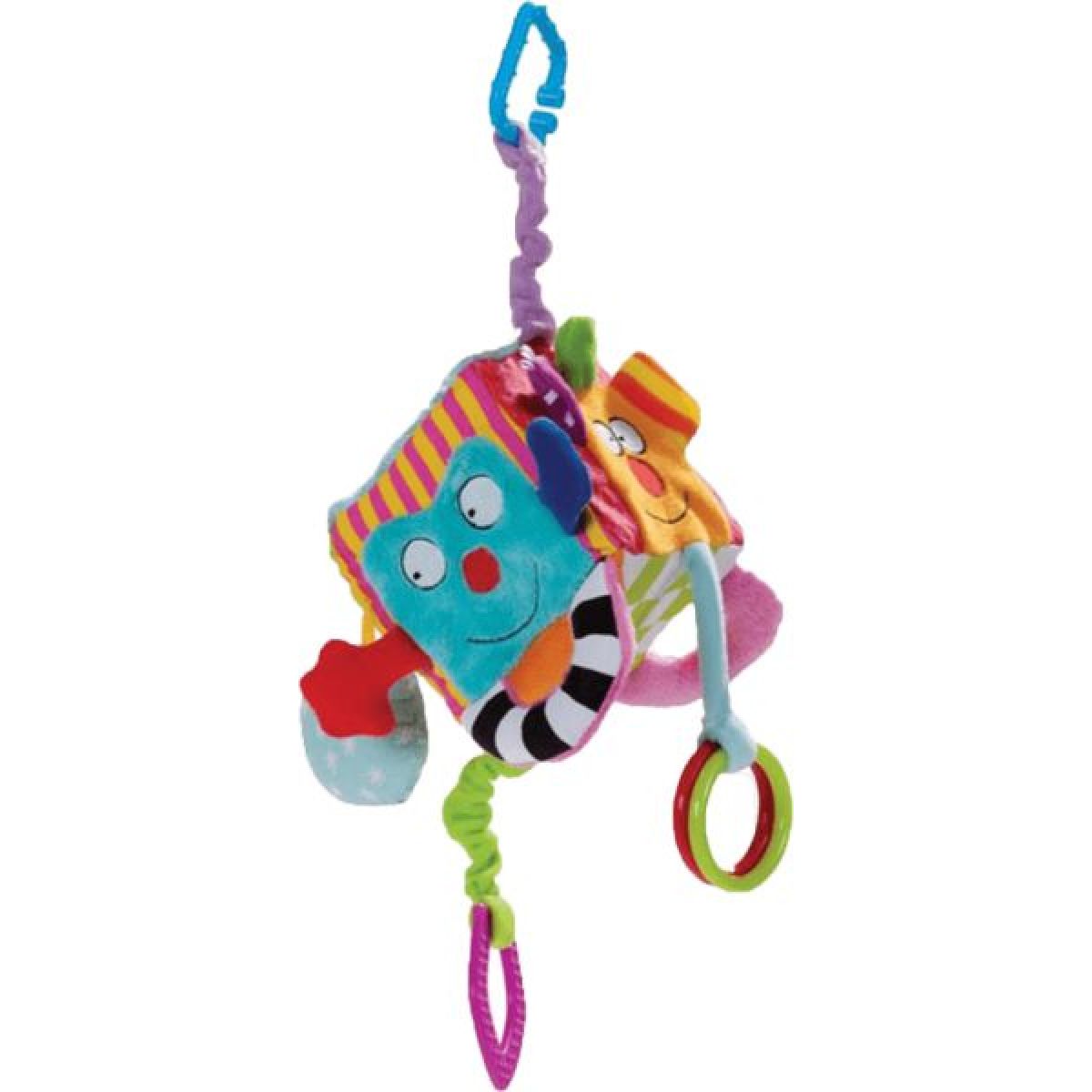 Zábavná a legrační - přesně taková je kostka Taf Toys. Na každé straně kostky je obrázek s překvapením nebo aktivita. Kostka je tak variabilní, že udrží pozornost Vašeho miminka na dlouhé minuty. Součástí jsou i pevně připojená kousátka a chrastítka, hračku lze pomocí úchytu připnout ke kočárku, postýlce nebo autosedačce. Po stisknutí se ozve melodie.