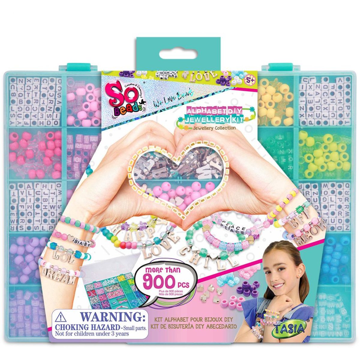 Abecedná sada TASIA obsahuje až 900 korálikov na výrobu originálnych náramkov pre deti už od troch rokov. Deti môžu vytvárať vlastné mená alebo správy pomocou písmeniek a rôznych komponentov, ktoré rozvíjajú ich kreativitu aj jemnú motoriku. Táto sada ponúka nekonečné možnosti tvorby personalizovaných šperkov, ktoré potešia každého malého tvorcu.