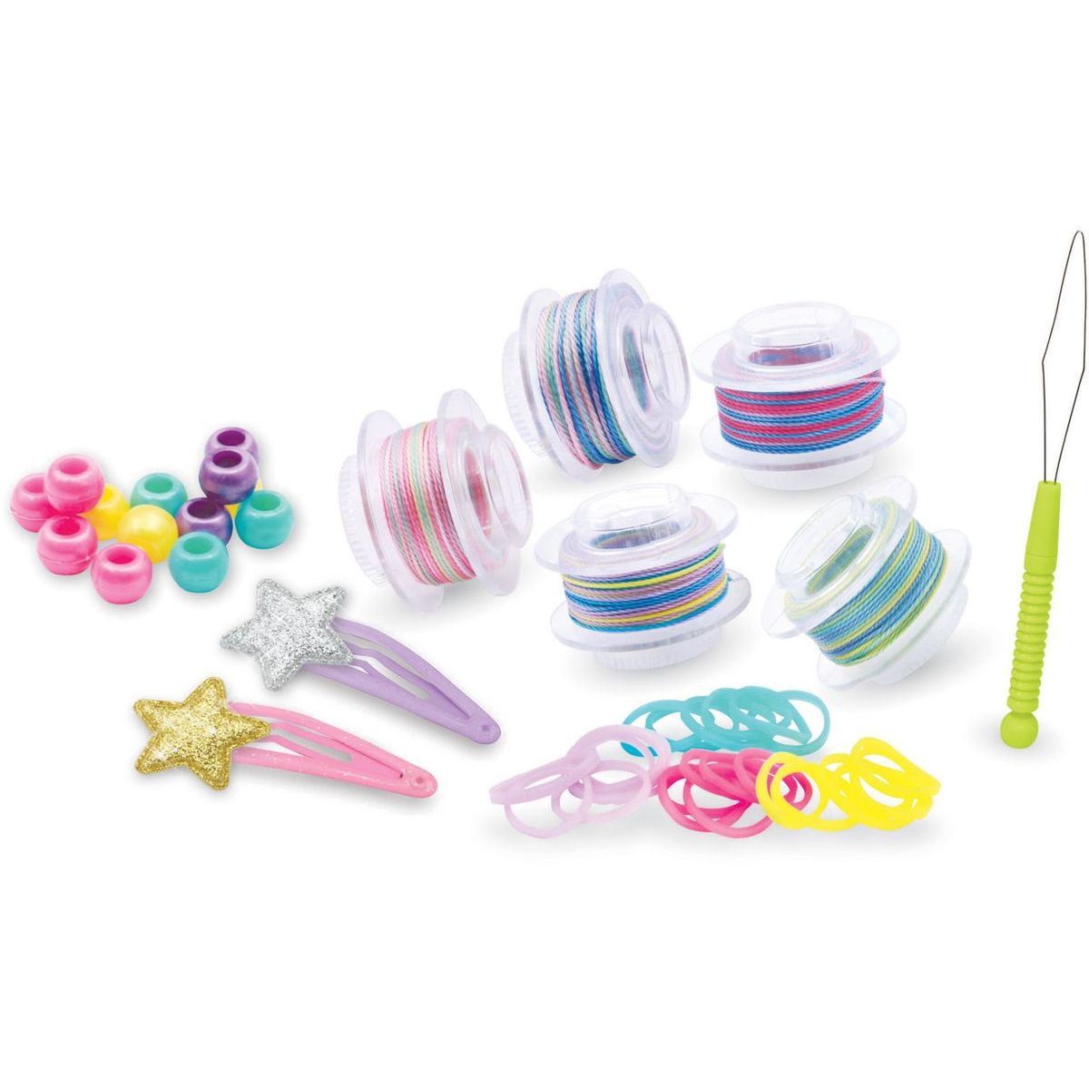 Tasia navliekač korálikov do vlasov ponúka deťom jednoduchý spôsob, ako si vytvoriť farebné a trblietavé vlasové ozdoby. S touto kreatívnou sadou môžu deti už od troch rokov ľahko navliecť koráliky a oživiť svoj účes podľa vlastnej fantázie. Skvelá aktivita na rozvoj jemnej motoriky aj tvorivosti!
