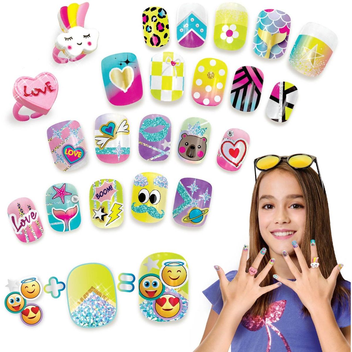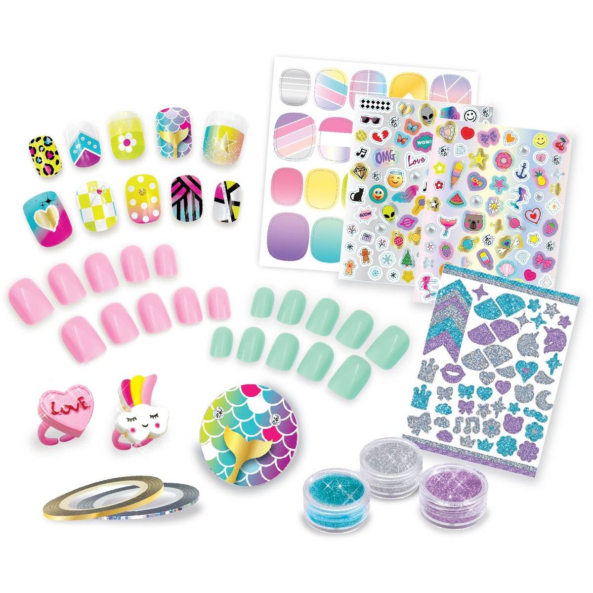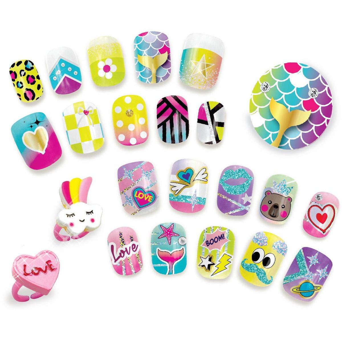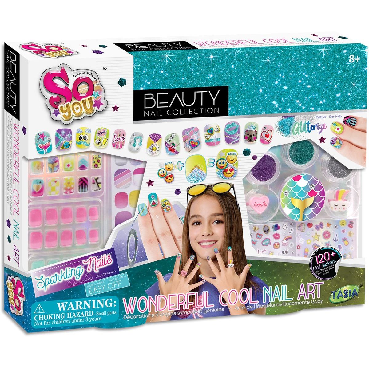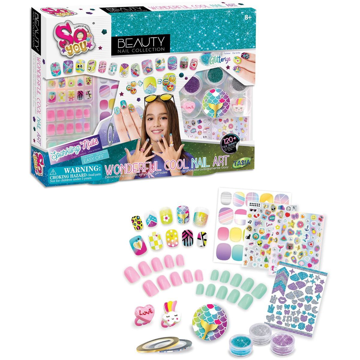 Tasia Veľká nechtová sada na úpravu nechtov s trblietkami a prsteňmi