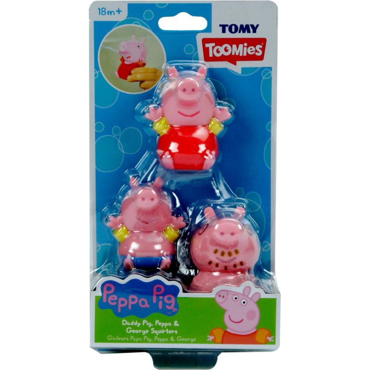 Prasiatko Peppa Pig s oteckom a Tomom sú tentoraz vyrobené ako vodeodolné figúrky, ktoré môžu deťom spestriť kúpanie.