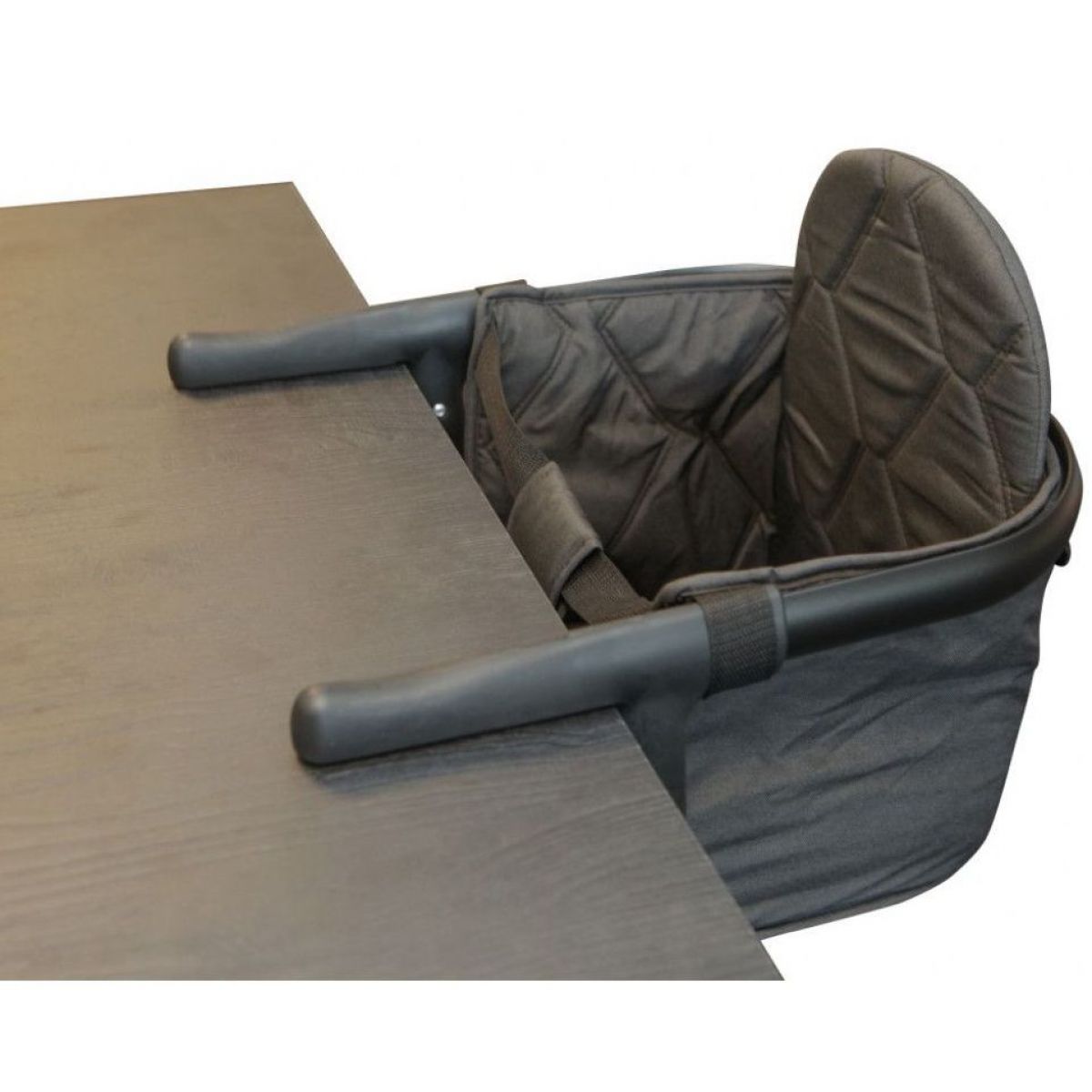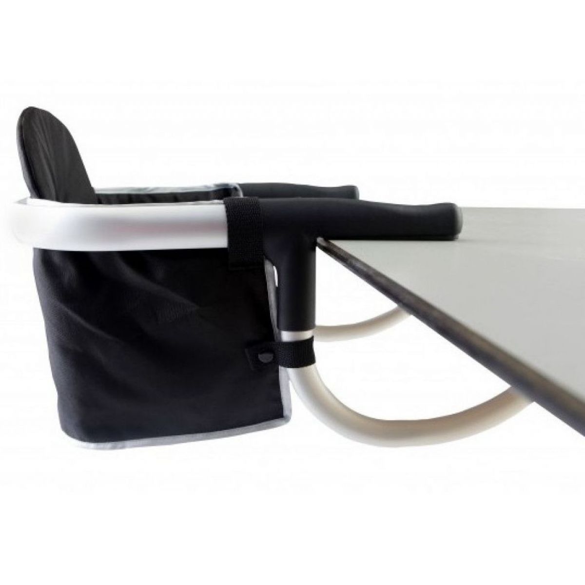 Hliníkový rám sedátka se zahákne o jídelní stůl a dítko tak může stolovat s ostatními dětmi či dospělými u klasického jídelního stolu.