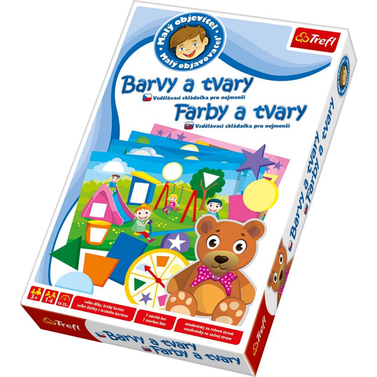 Farby a tvary sú námetom vzdelávacie detskéj hry. Tá je ďalší z radu hier Malý objaviteľ, ktorá je vyhľadávaná a obľúbená u učiteľov Materských škôlok. Podkladom pre odštartovanie hry sú štyri tematické puzzle dosky, s námetmi ako sú pláž, vlak, detská izbička alebo ihrisko. Na tomto základe si môžu deti zahrať viac hier.