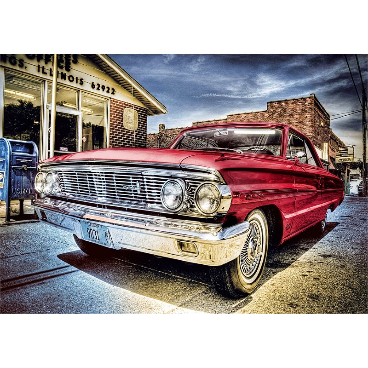 Puzzle s motivem parádně HDR nasvíceného retro auťáku.