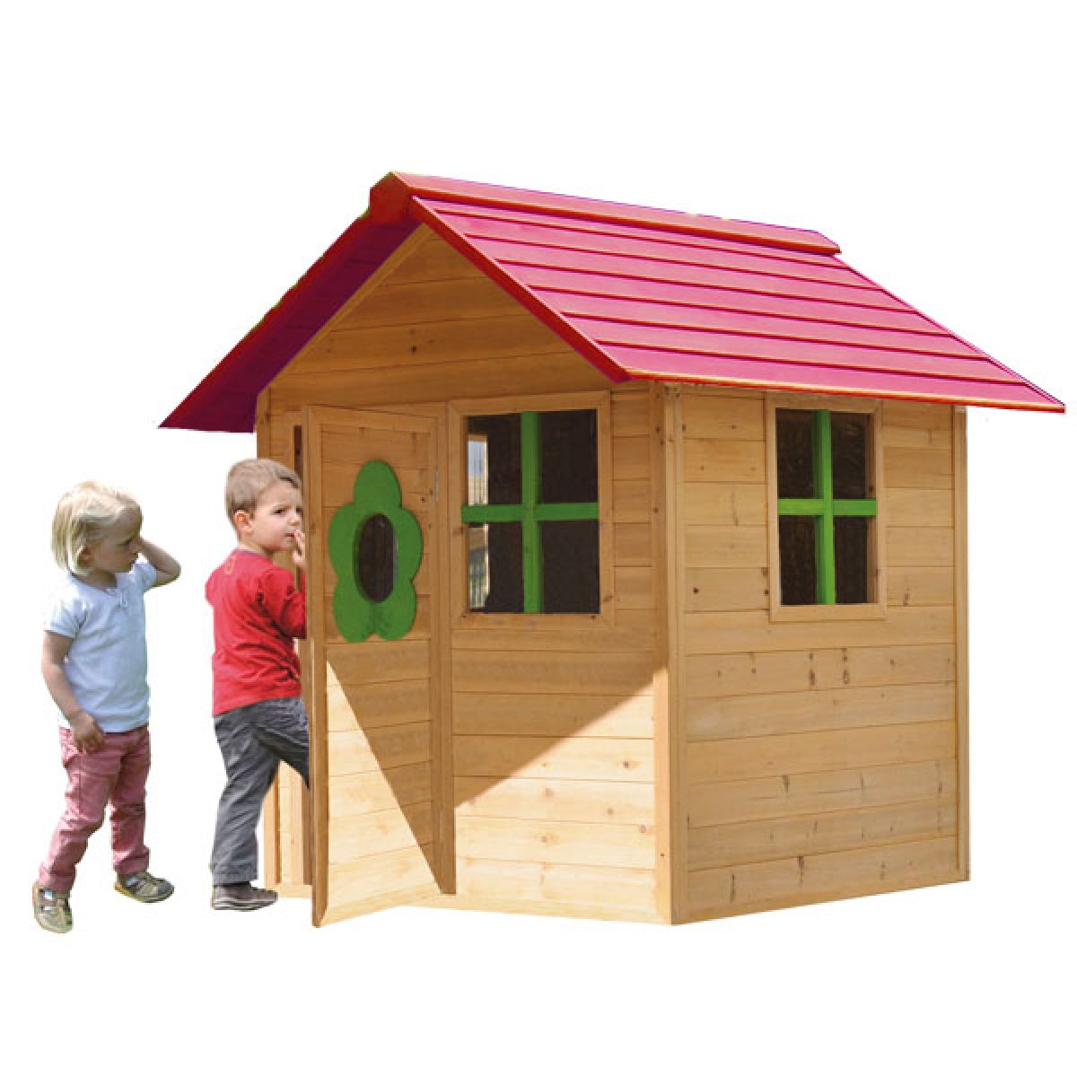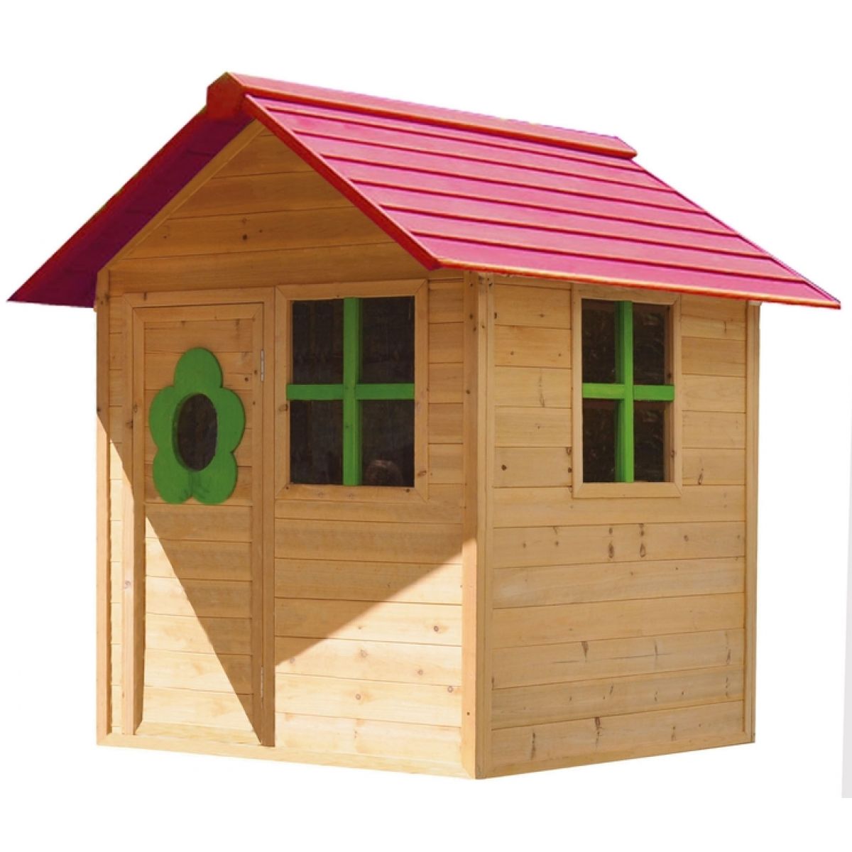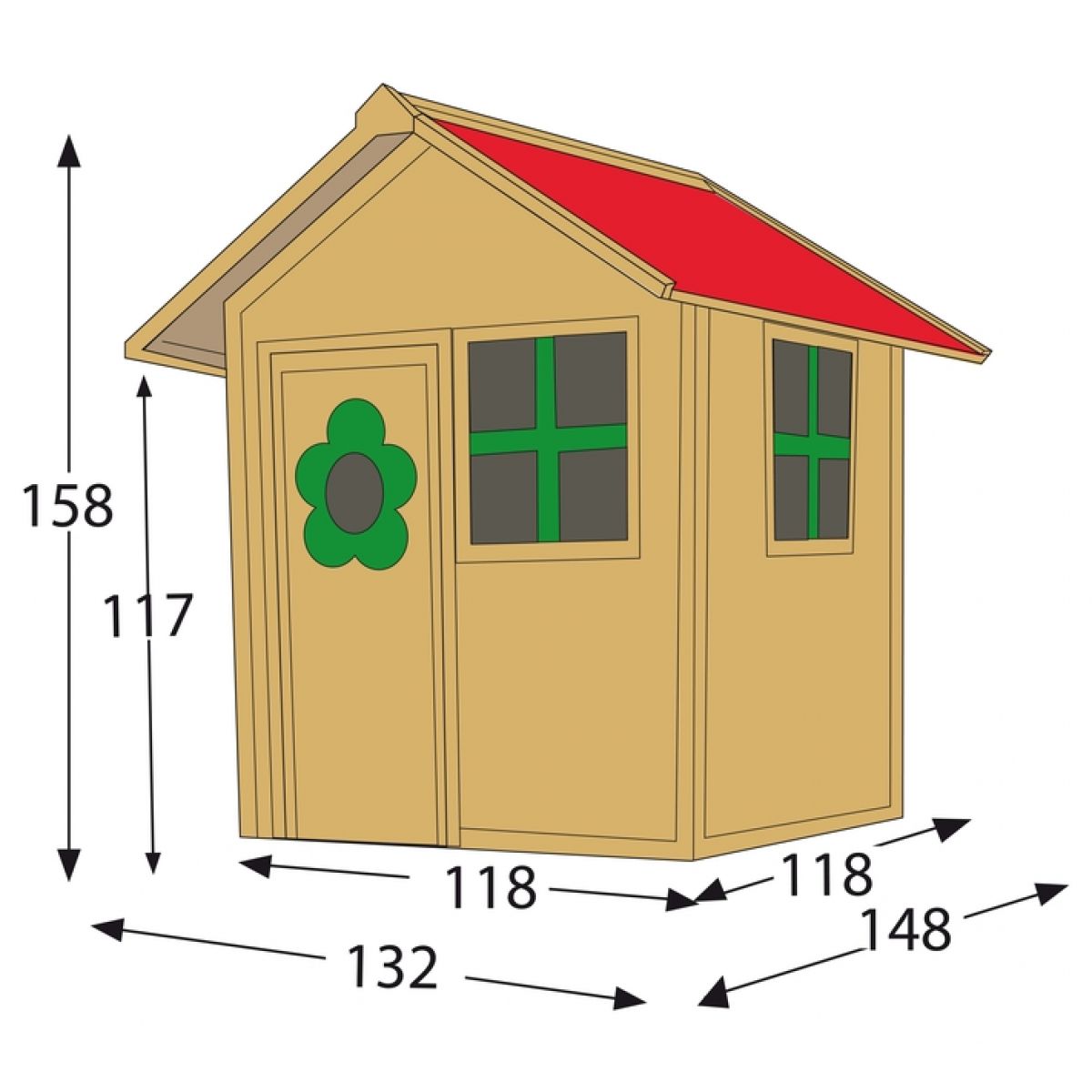 Celodřevěný dětský domeček s okny s plastovou výplní. Dřevo je ošetřeno proti škůdcům a plísním.