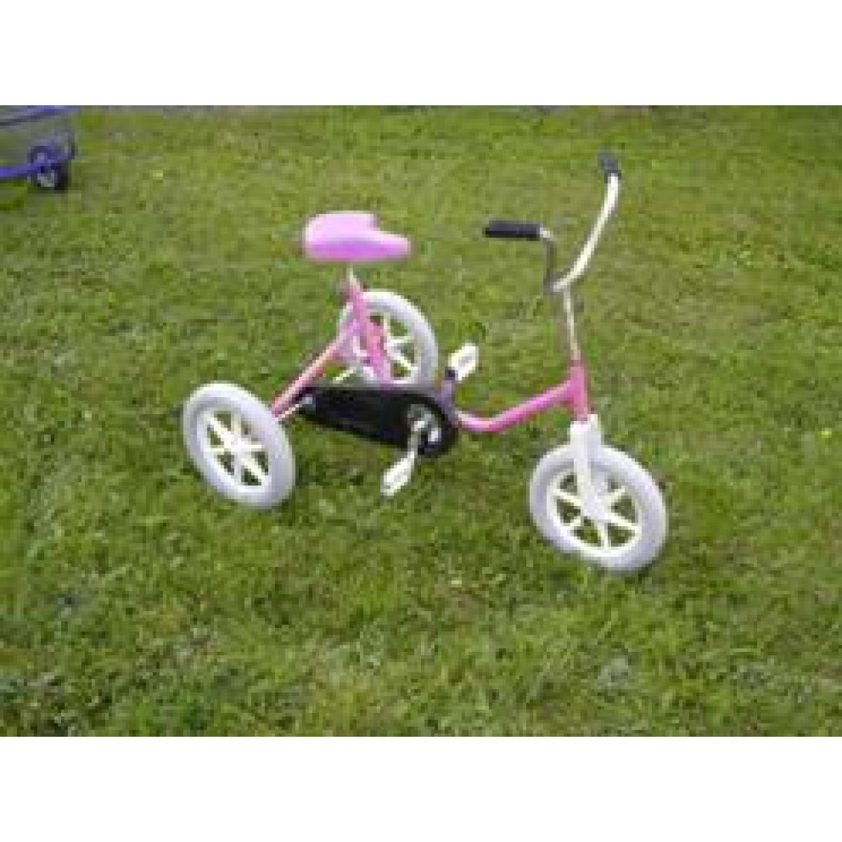 Kovová tříkolka, šlapání ve středu - klasická česká. Sedlo je plastové výškově sravitelné.