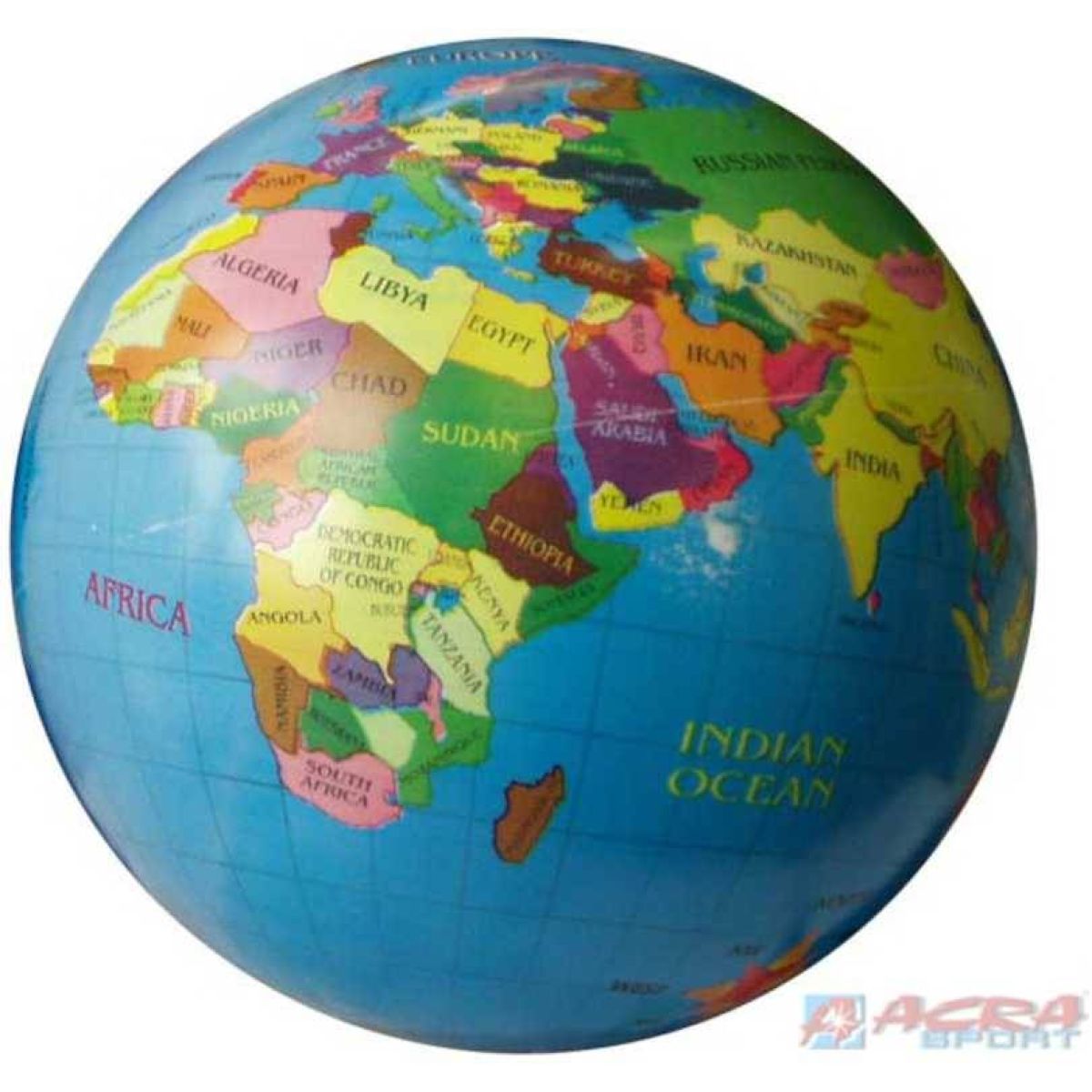 Gumová lopta so zobrazením mapy sveta ako na glóbuse je pripravená pre všetkých malých športovcov.