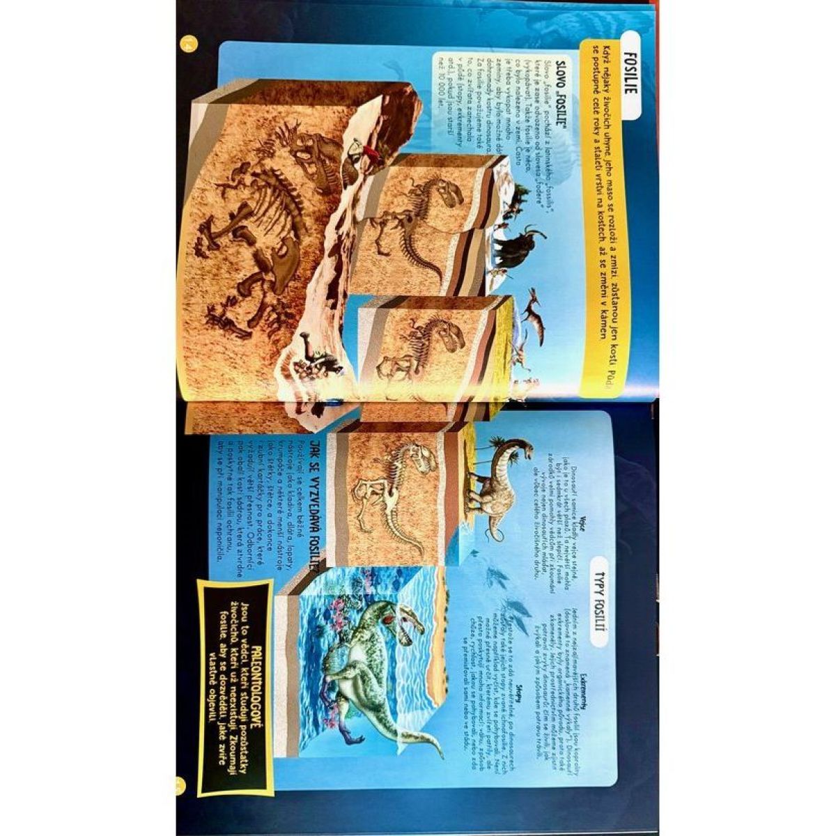 Najväčším lákadlom je veľký 3D Tyrannosaurus Rex, ktorý si môžu čitatelia sami poskladať zo 44 kartónových dielov bez lepidla a nožníc. Hotový model s dĺžkou 53 cm sa stane dominantou každej detskej izby a dôkazom, že učenie môže byť aj skvelá zábava.