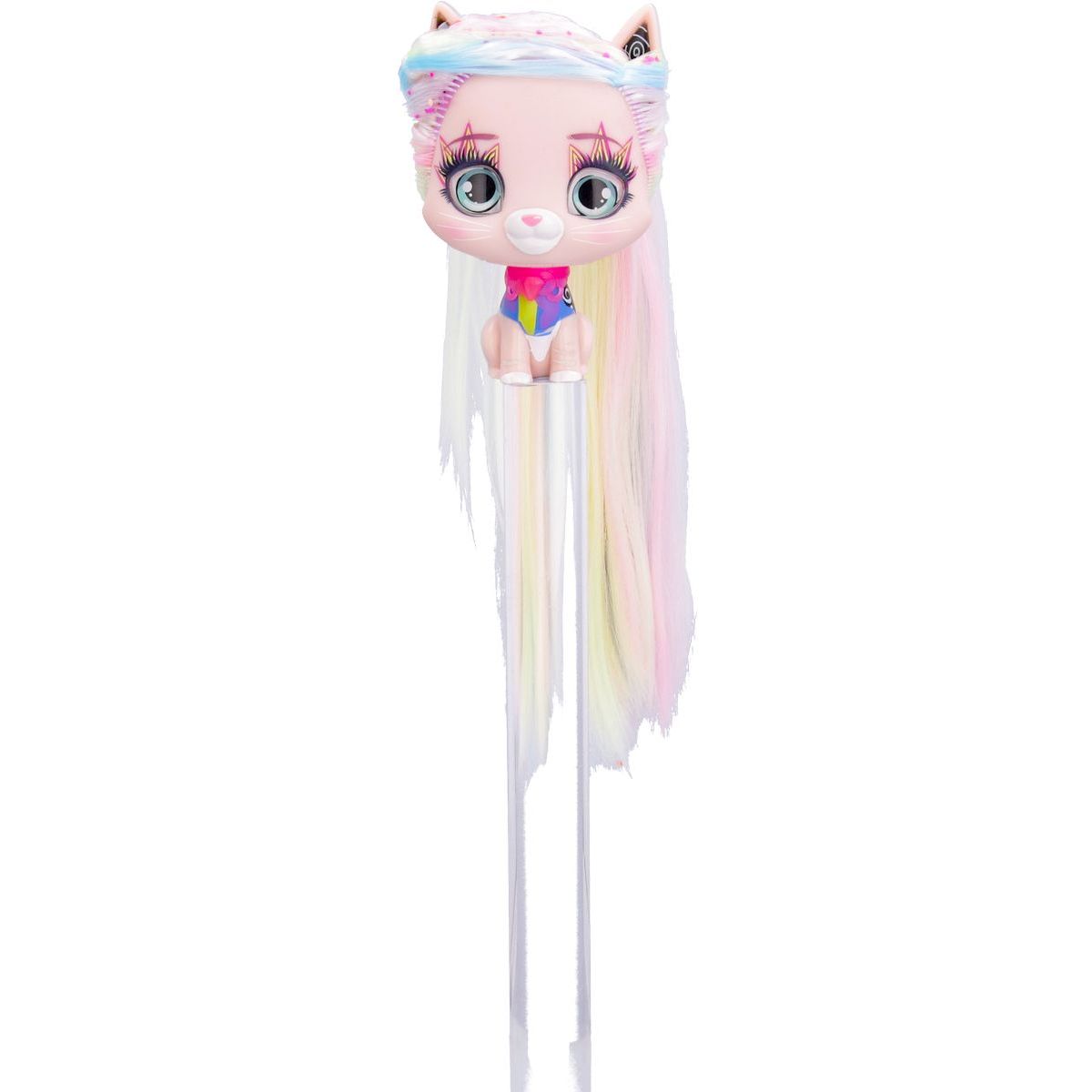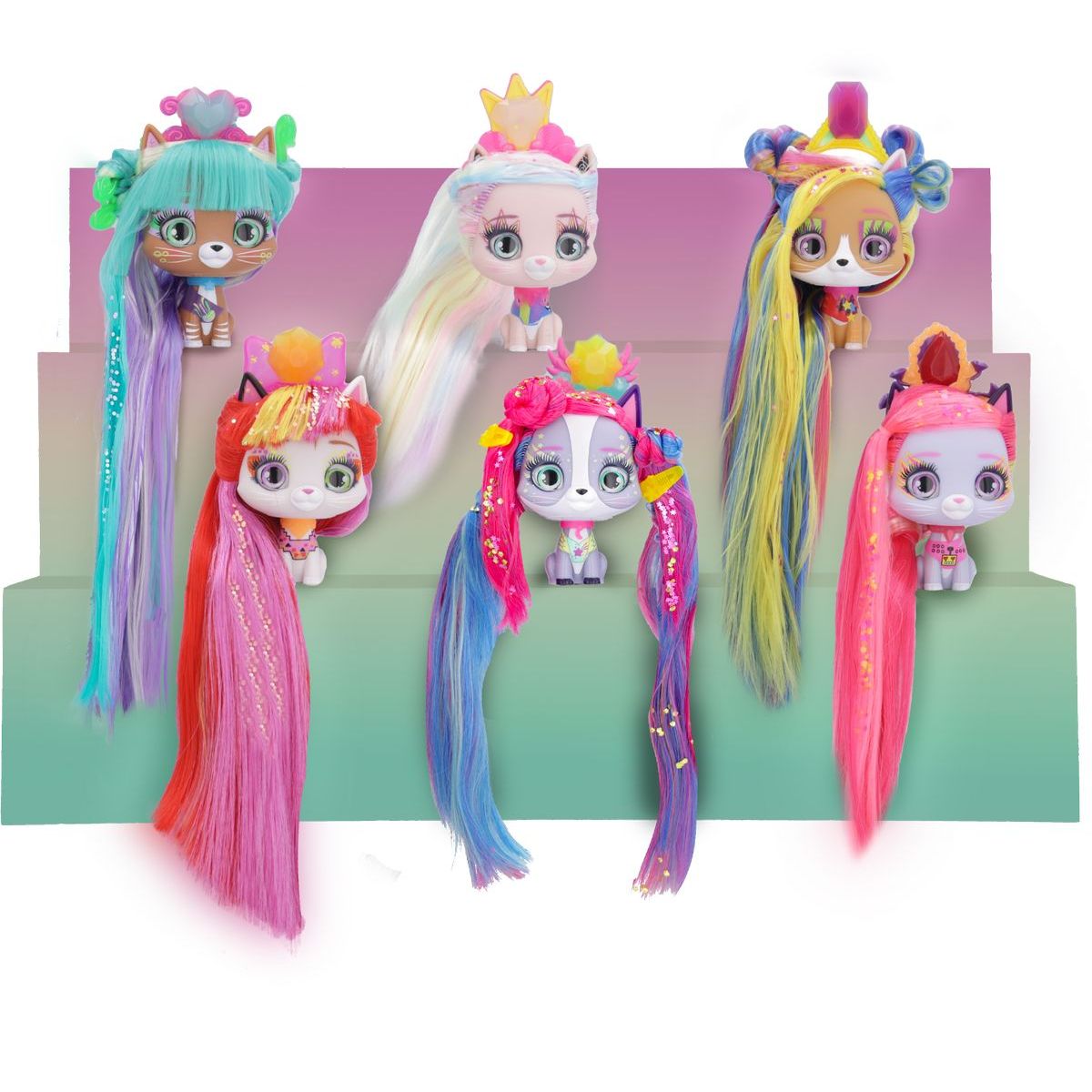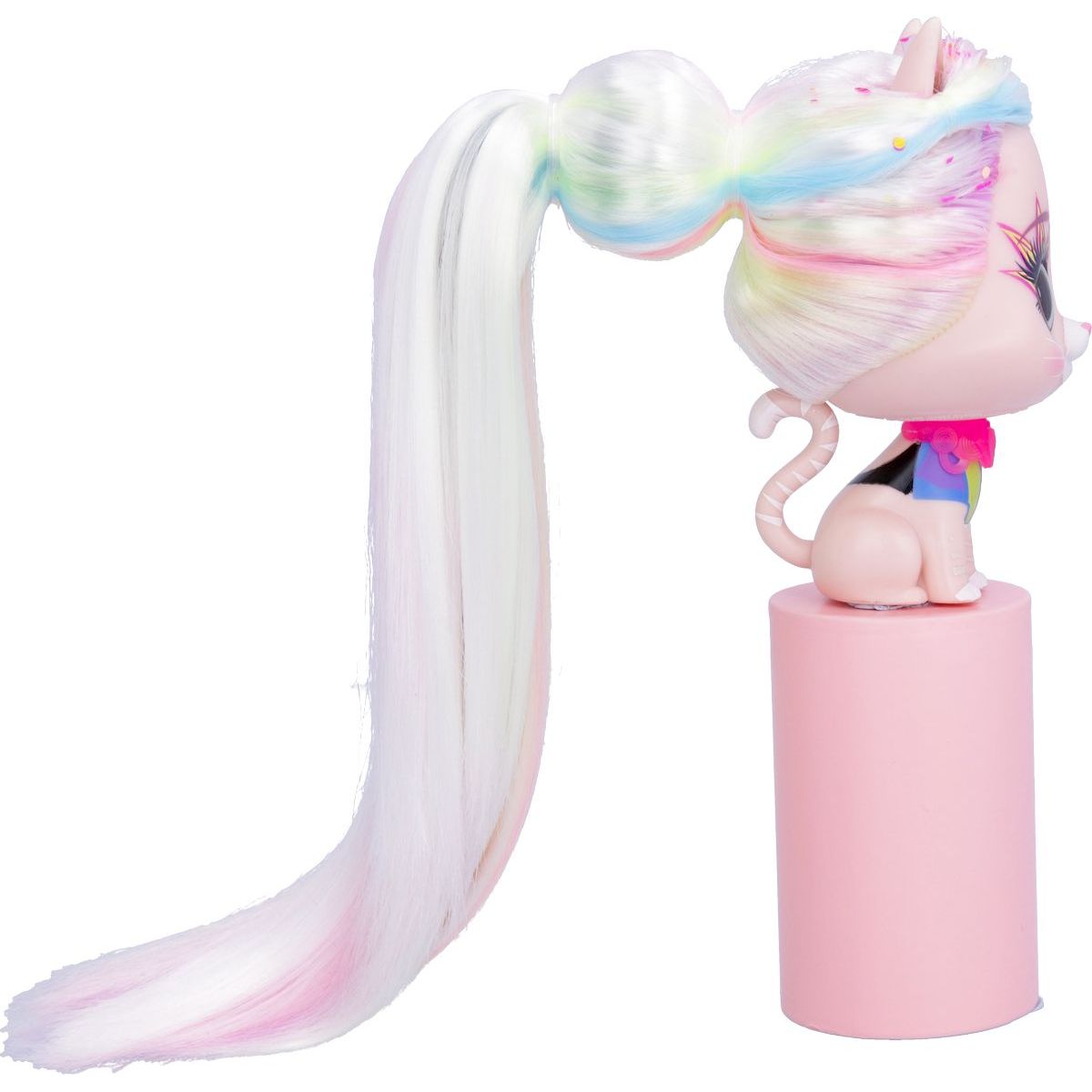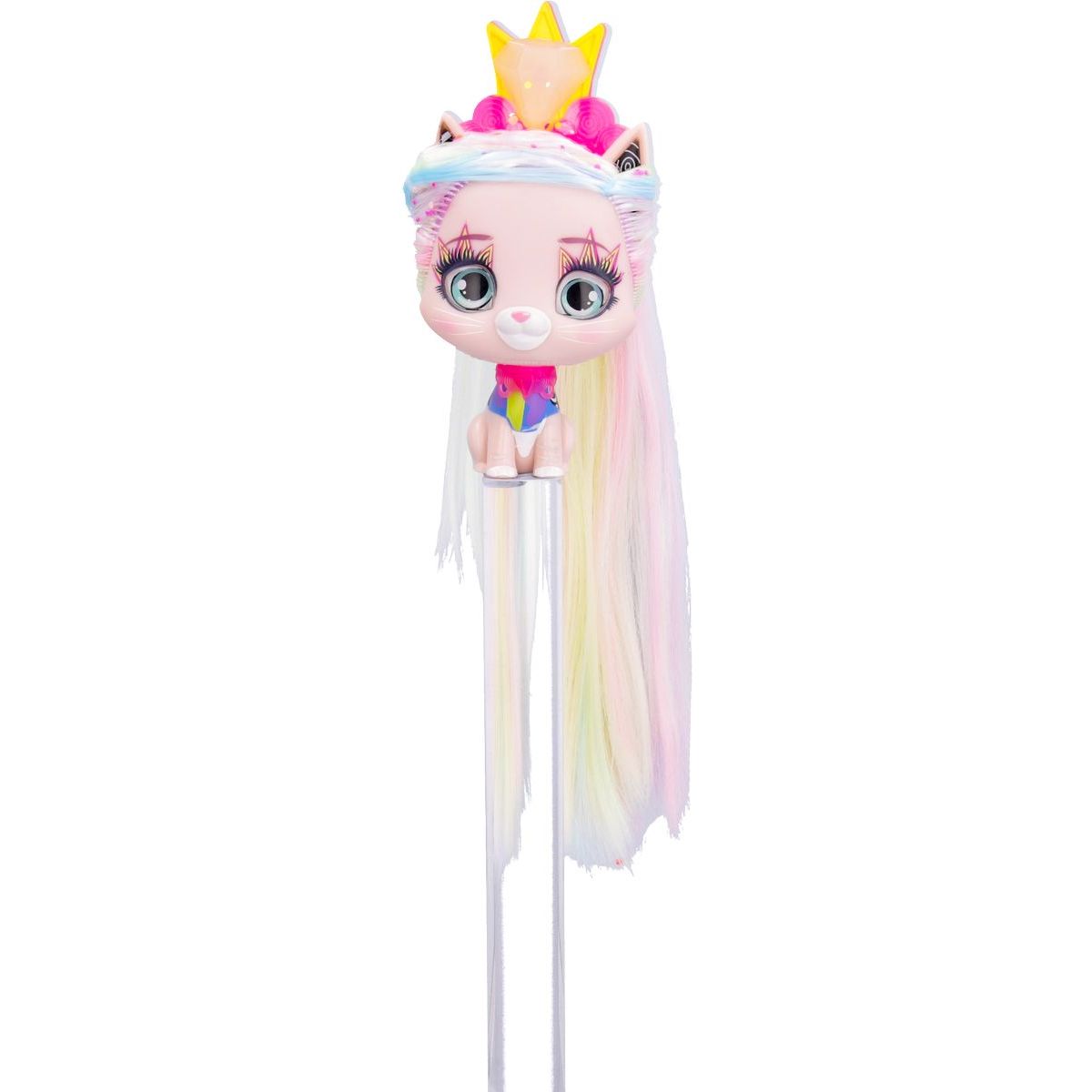 Potom čo z obalu vyberú mačičku, uvidia jej dlhé vlásky. Môžu sa pustiť do ich rozčesávania a zdobenia pripravenými doplnkami. Zaisto sa bude vynímať medzi zberateľskými miláčikmi, ukotvená na svojom podstavci. Mačička je vyrobená podľa animovaného seriálu VIP Pets na YouTube Kitoons.