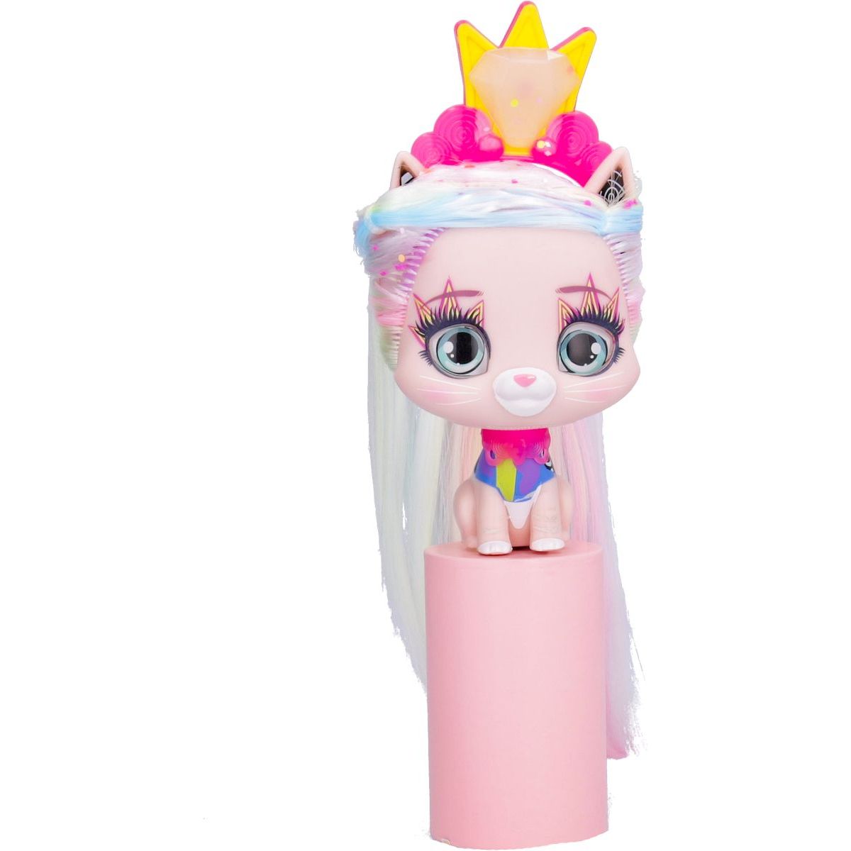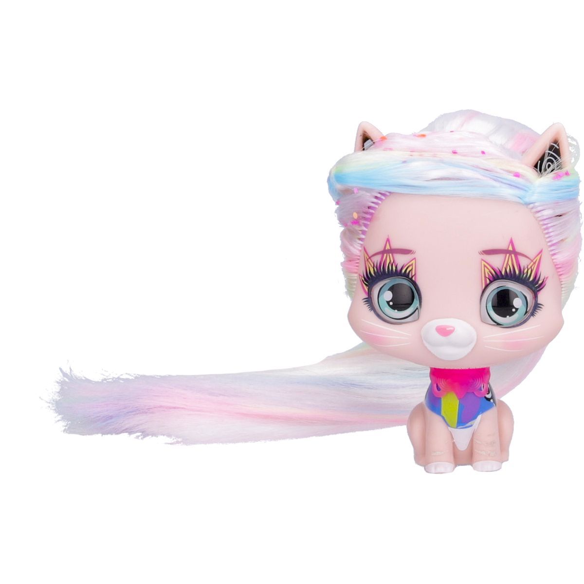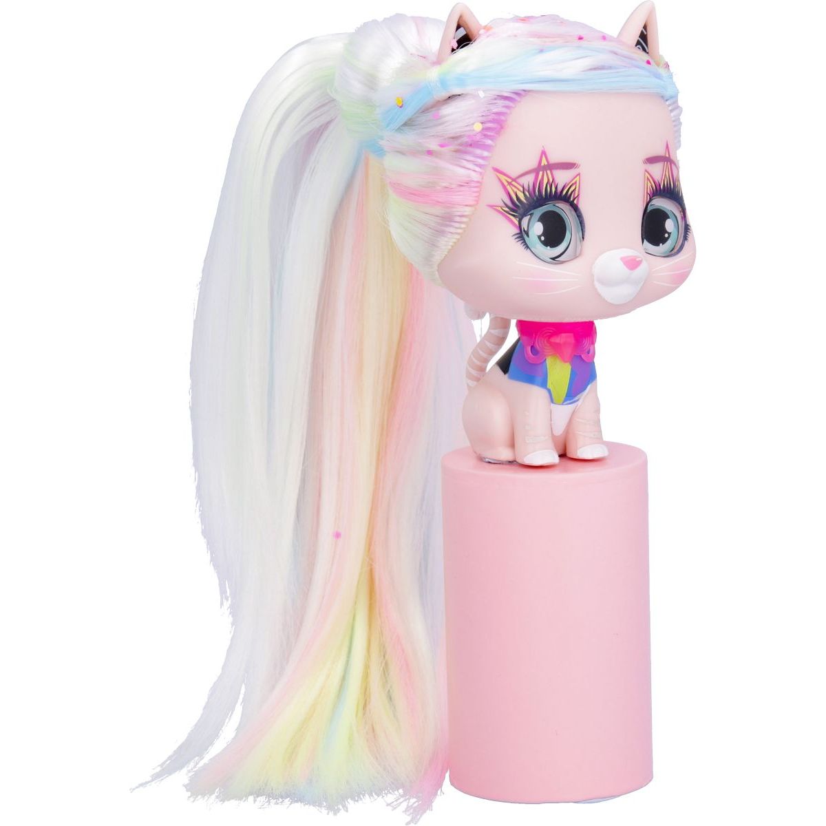Potom čo z obalu vyberú mačičku, uvidia jej dlhé vlásky. Môžu sa pustiť do ich rozčesávania a zdobenia pripravenými doplnkami. Zaisto sa bude vynímať medzi zberateľskými miláčikmi, ukotvená na svojom podstavci. Mačička je vyrobená podľa animovaného seriálu VIP Pets na YouTube Kitoons.