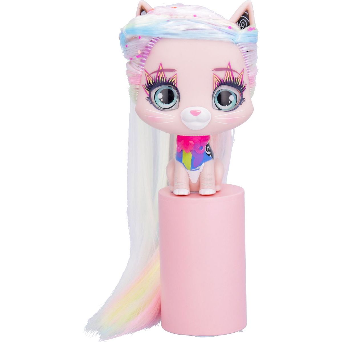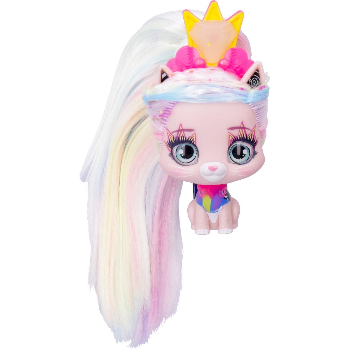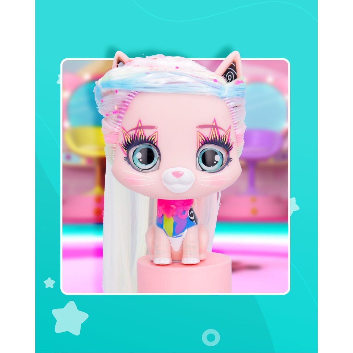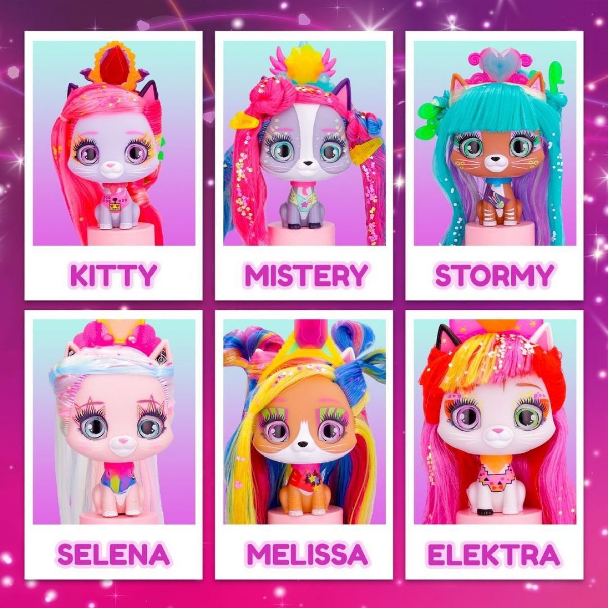 Potom čo z obalu vyberú mačičku, uvidia jej dlhé vlásky. Môžu sa pustiť do ich rozčesávania a zdobenia pripravenými doplnkami. Zaisto sa bude vynímať medzi zberateľskými miláčikmi, ukotvená na svojom podstavci. Mačička je vyrobená podľa animovaného seriálu VIP Pets na YouTube Kitoons.