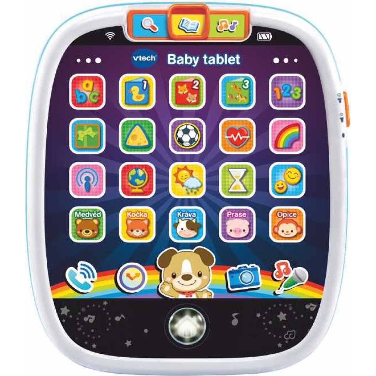 Interaktívny tabliet je určený najmenším deťom, ktoré sa na tabletu zábavnou formou učí farbám, tvarom, číslam a tiež pomenovaniu a rozlišovaniu zvieratiek.