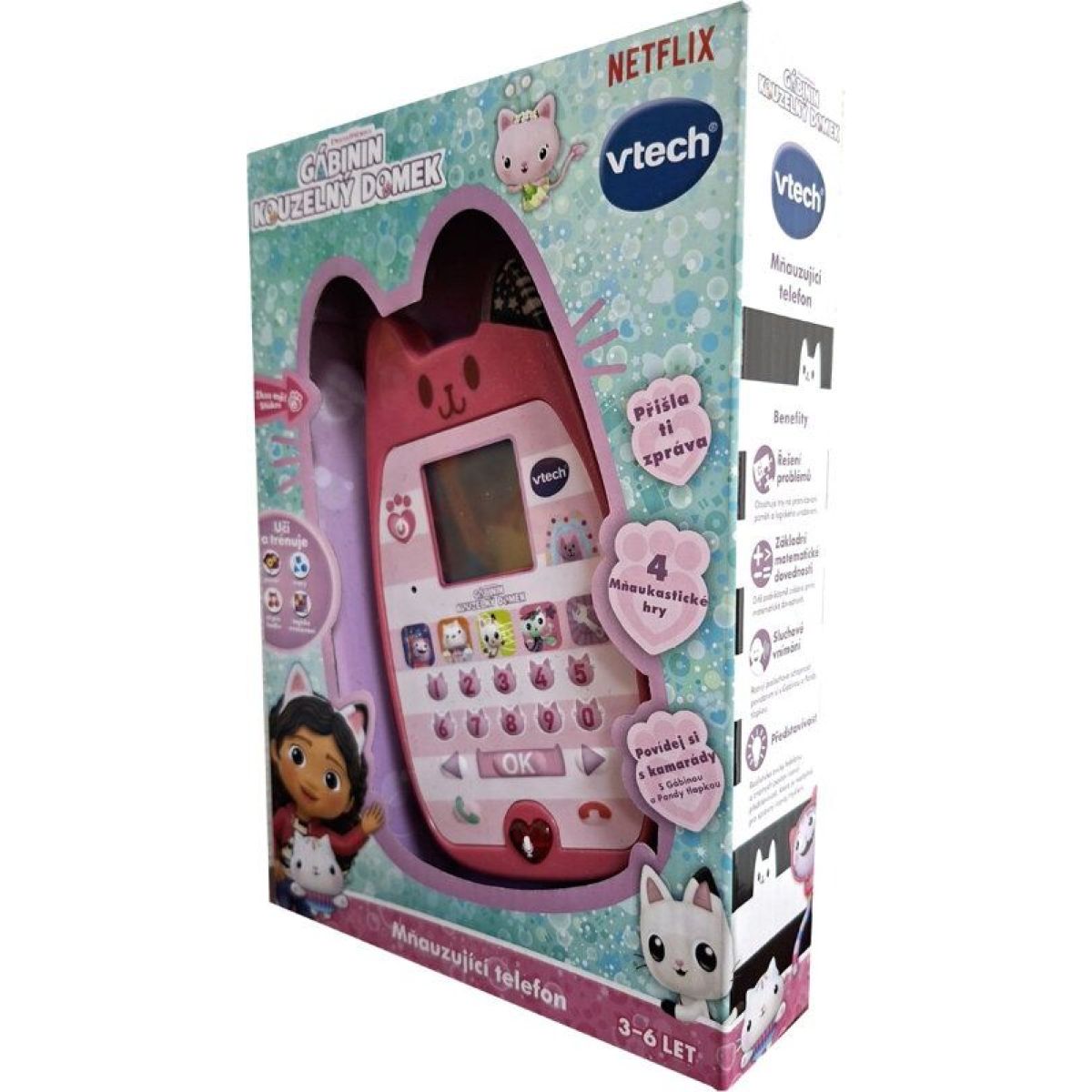 VTech Gábinin kúzelný domček – Mňaukajúci telefón vtiahne deti priamo do sveta Gábi a jej mačacích kamarátov. Stačí stlačiť tlačidlo a telefón v tvare mačičky prehovorí známymi hlasmi zo seriálu – akoby sa skutočne spojili s Gabby, Pandy tlapkou, Dortíkom či DJ Kocúrom.