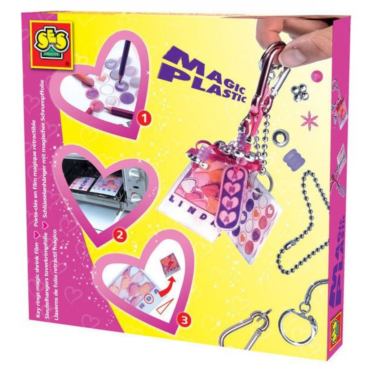 Smršťovací fólii vybarvíte podle předlohy. Poté ji dáte do rozehřáté trouby, kde se výrazně zmenší-smrskne, nabyde na tloušťce a vznikne z ní pevný a roztomilý obrázek, použitelný např. jako přivěsek, odznak, magnet apod.