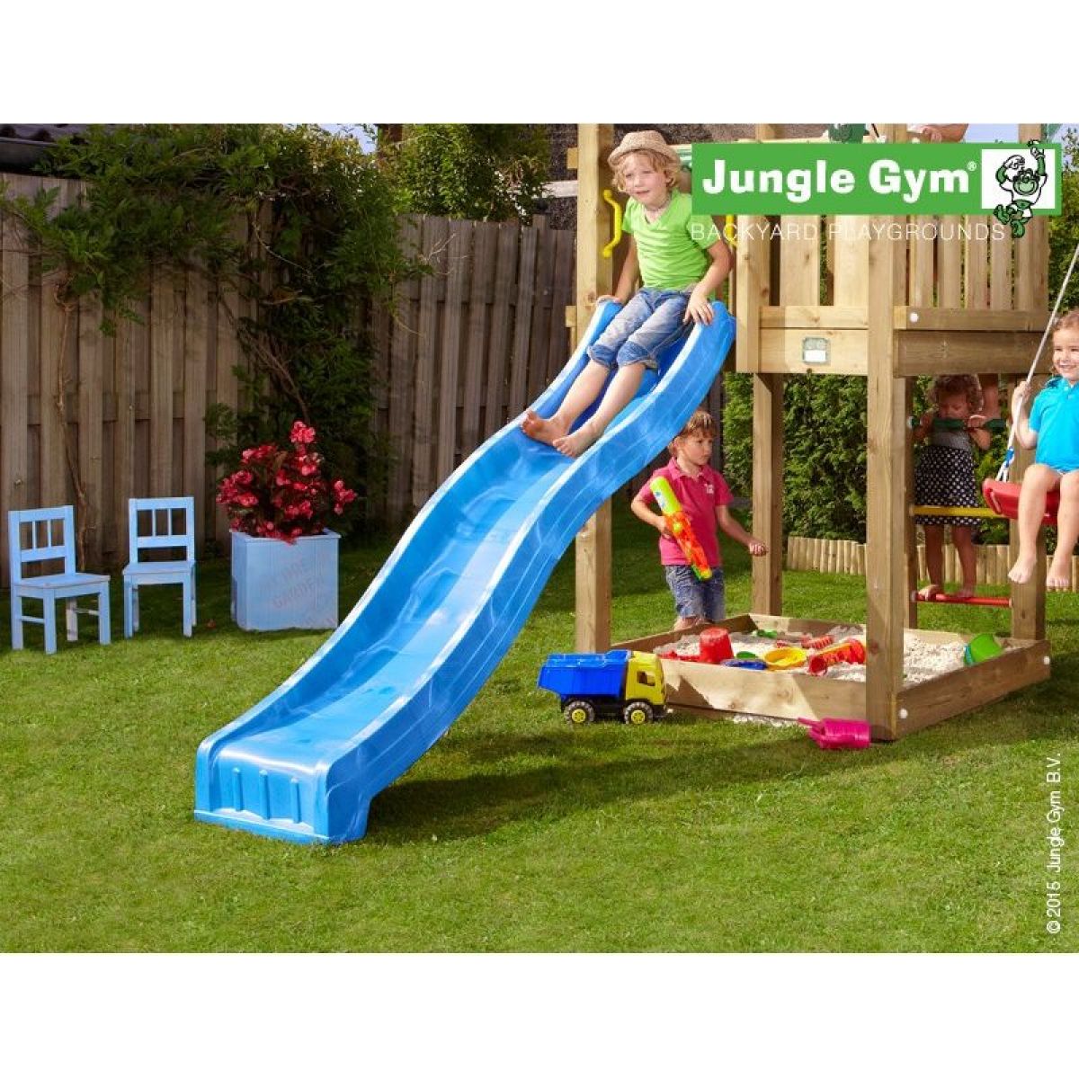 Sklzná plocha je zvlnená. Pre lepšie šmýkanie počas teplých letných dní je možné pripojiť hadicu s vodou, ktorá bude pre deti príjemným osviežením.