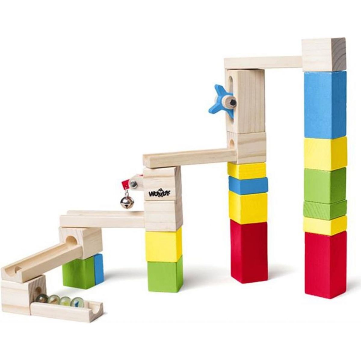 Woody Guličková dráha - stavebnica Súčasťou balenia je všetko ako na obrázku. WOODY drevené hračky kladú veľký dôraz popri vysokej kvalite a bezpečnosti, tiež na rozvoj dieťaťa v rôznom období rastu, ako po stránke motorickej, tak aj pedagogickej a psychickej. Veľká časť drevených hračiek z kolekcie WOODY je vyrábaná v Českej republike, ktorá má dlhoročnú tradíciu vo výrobe drevených hračiek. Všetky drevené hračky sú testované na najvyššie medzinárodne štandardy a väčšina hračiek je zaradená do programu "BEZPEČNÉ HRAČKY" (pre ostatné jazyky SAFE TOYS). Tento program zaručuje najvyššiu možnú garanciu bezpečnosti s priebežnou a pravidelnou kontrolou predávaného tovaru.