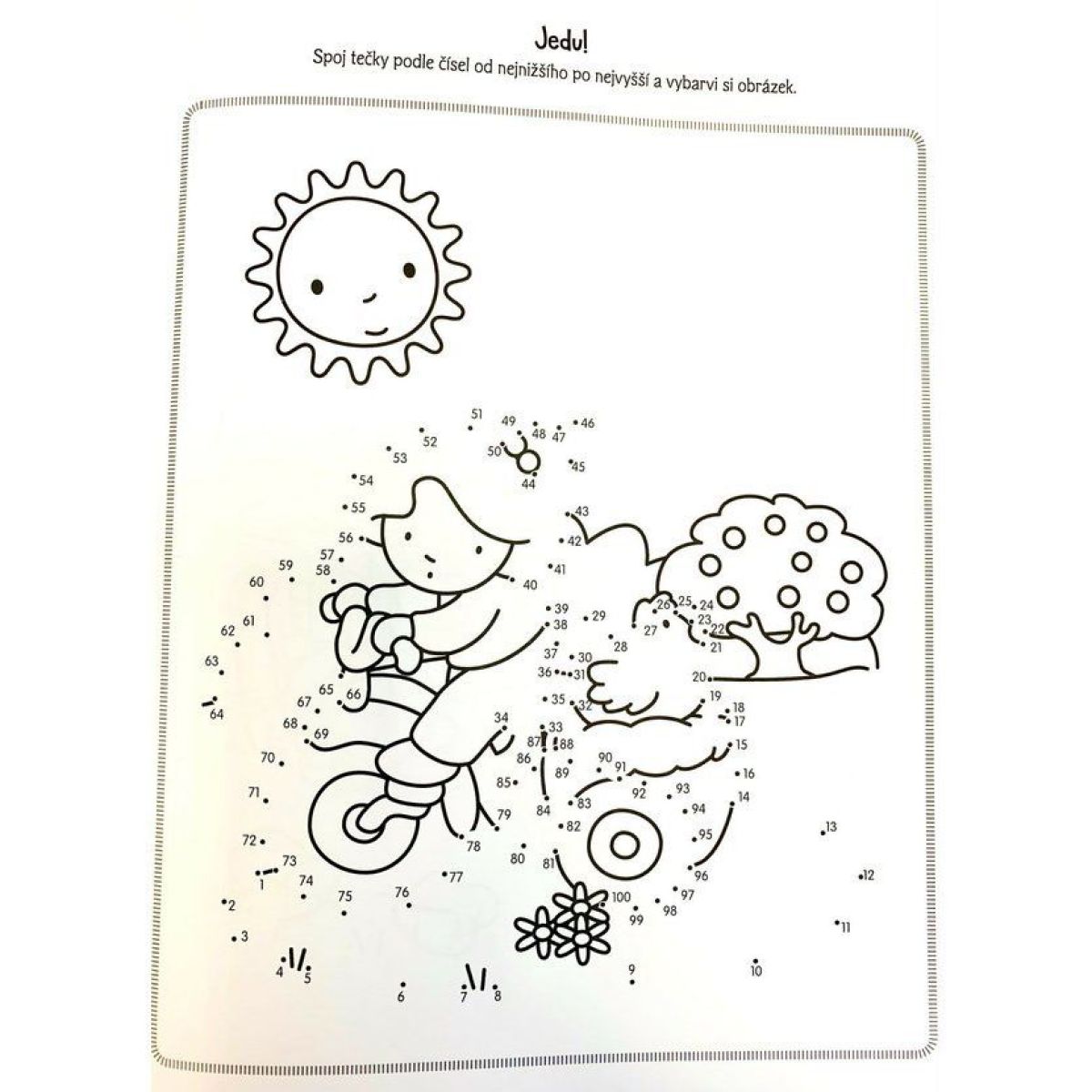 Hotové obrázky si deti môžu ešte vyfarbiť a dať im vlastnú farebnú podobu. Táto cvičebnica je ideálna na pokojné chvíle doma, na cestách aj ako hravá príprava na školské zručnosti.