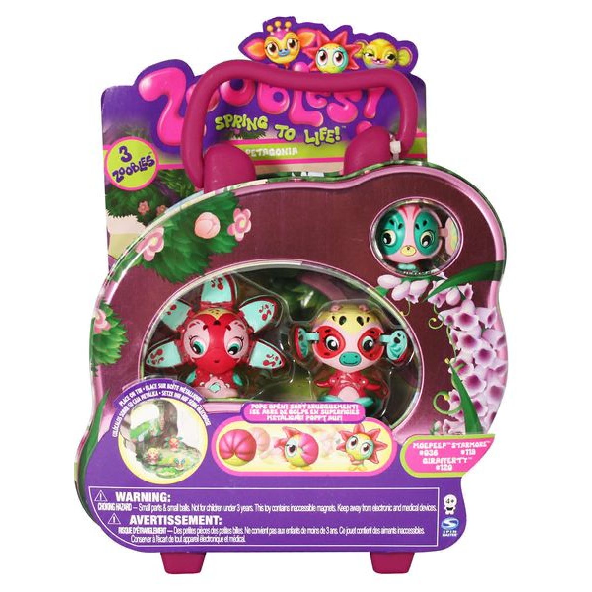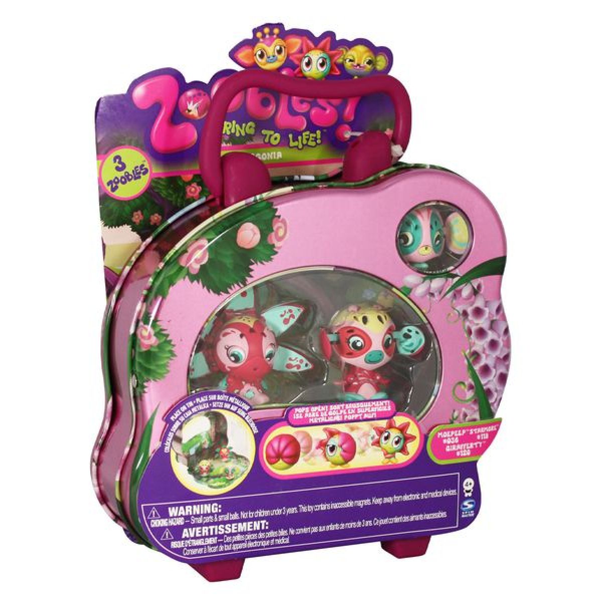 Balení obsahuje 3 Zooblíky a kovovou krabičku (kufřík).